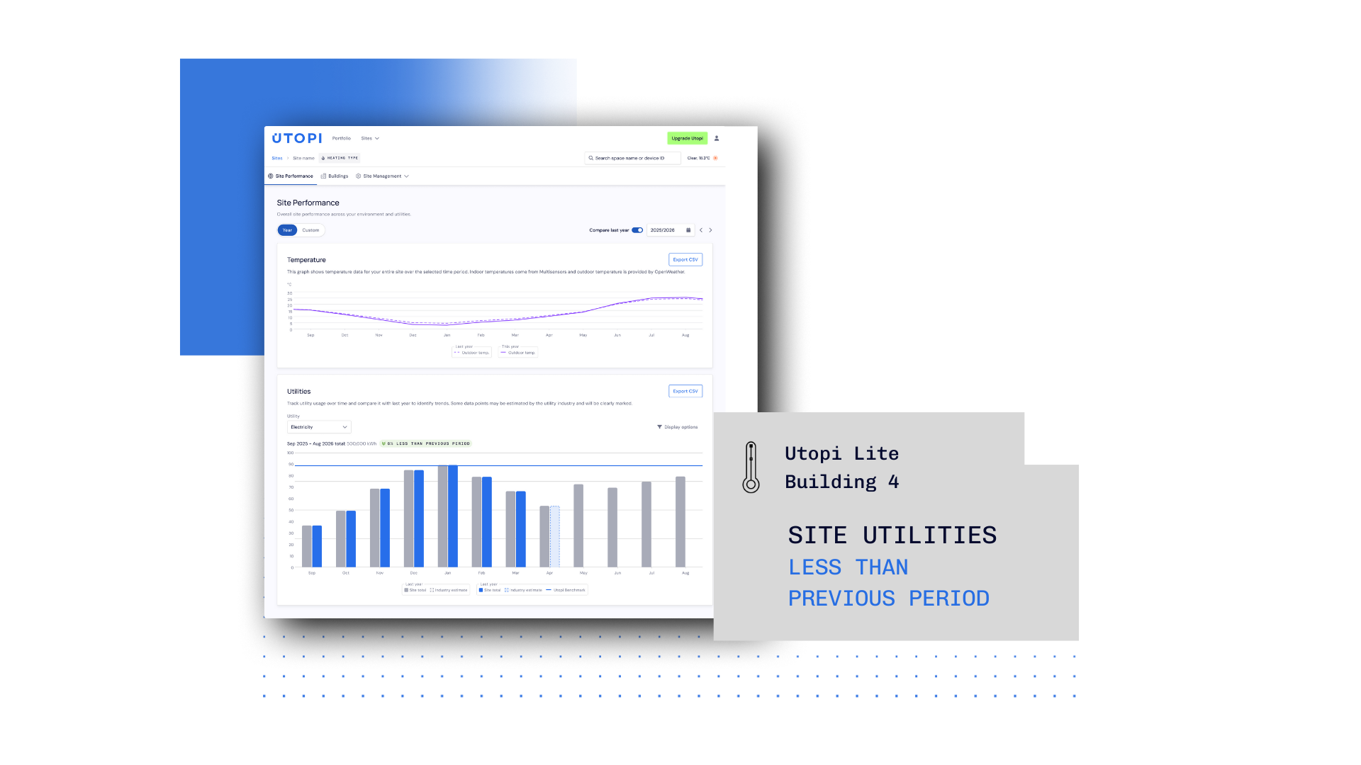 Start free with Utopi Lite and unlock more detail when you’re ready. Upgrade to the full Utopi platform for real-time data, multi-utility monitoring, resident engagement, and automated ESG reporting.