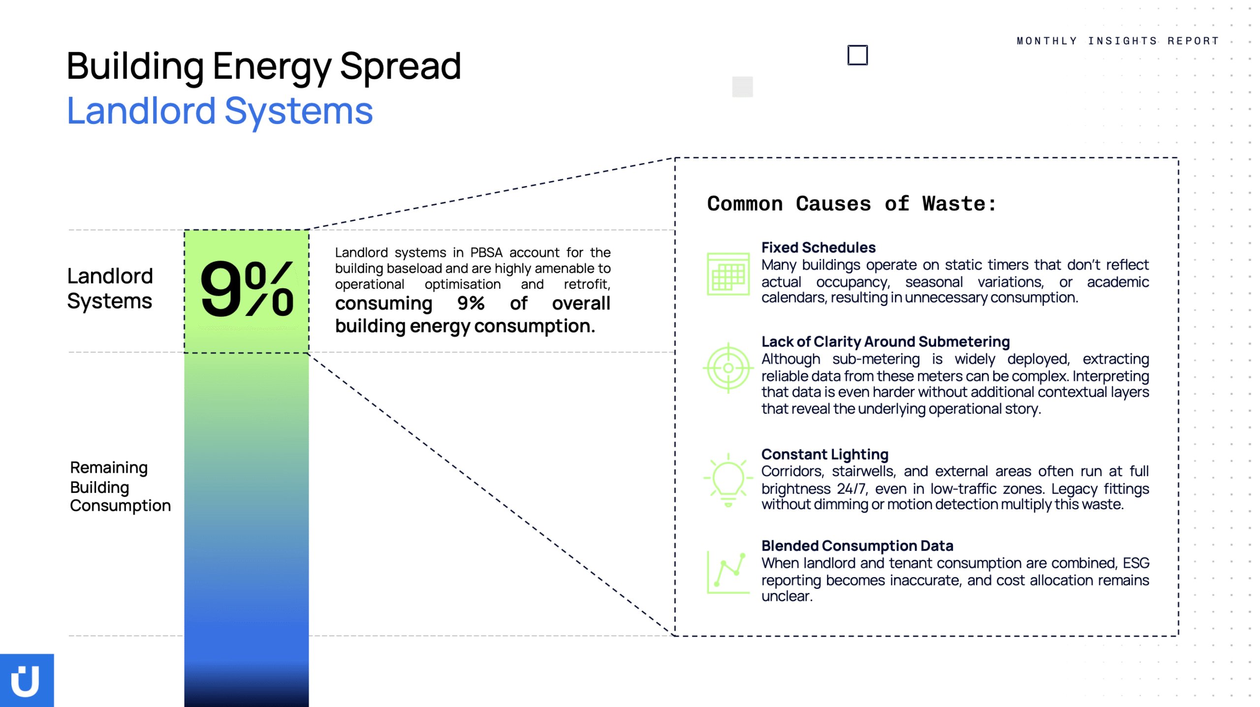 This month, we’re taking a different approach, using our Building Consumption Index to dive deeper into where baseload consumption is hiding. Access to this level of granular data on landlord system behaviours provides a powerful foundation for uncovering hidden waste and optimising always-on infrastructure. So, what are the biggest drivers of landlord system waste, and how does your building measure up? Let’s dive in.